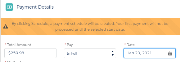 When users select a future date while scheduling a payment during checkout, the message will precisely indicate when the order or payment will be processed, based on configuration. Figure 1 message is displayed when Convert Cart To Order When Scheduled is disabled and Figure 2 message is displayed when Convert Cart To Order When Scheduled is enabled.