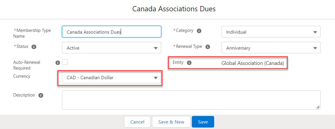 In Description, enter a phrase to describe the membership type. This displays to constituents in Community Hub.