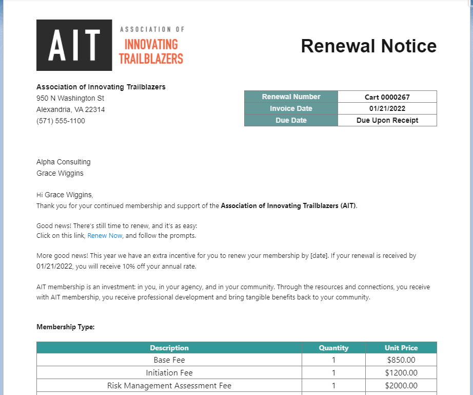 For more information on generating Membership Renewal Invoices, see https://help.nimbleams.com/bulk-billing-6177863.html