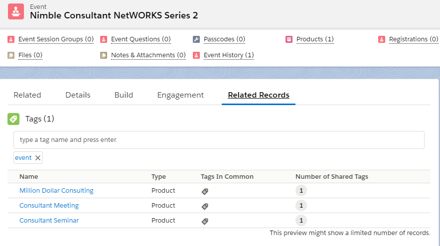 Staff can create customizable tags on an event to display the related events on the lightning carousel of the Community Hub.