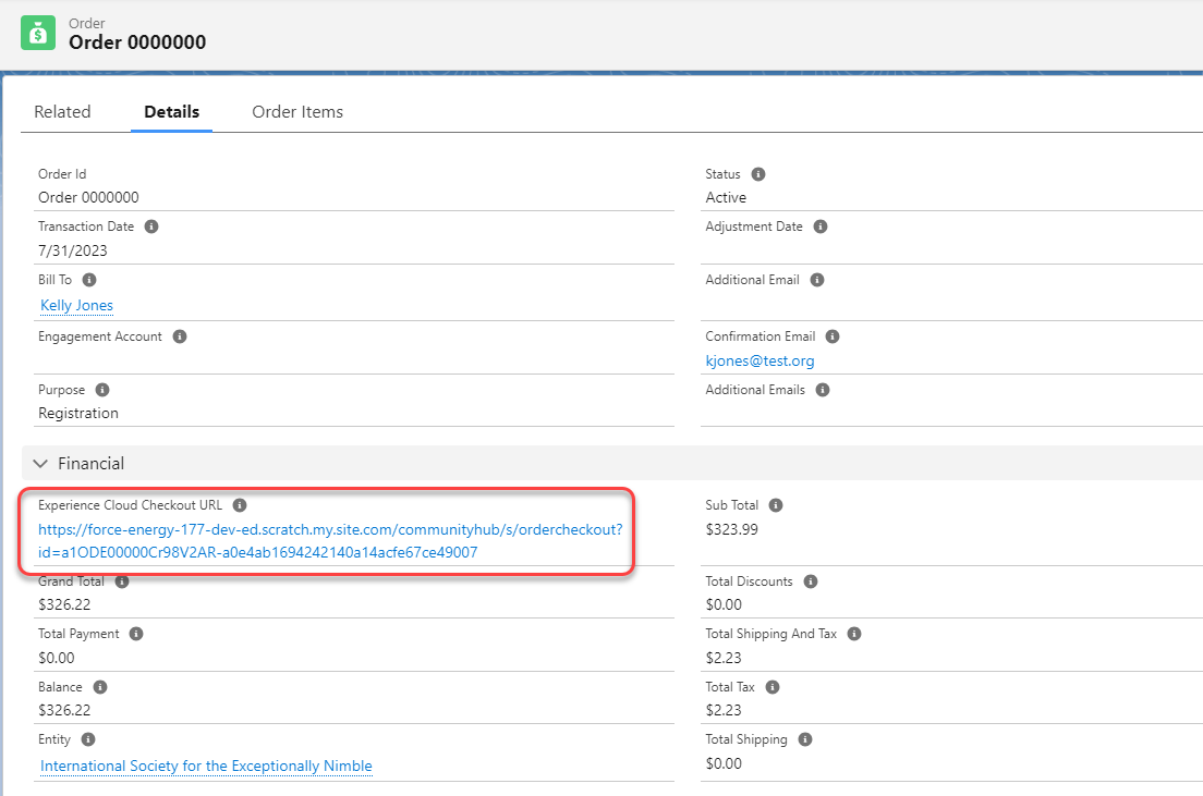 Nimble AMS has provided ways to allow your association members to effortlessly make payments in the Member Portal for open invoices, including pro forma orders. When there's an outstanding balance on an order, the association can send an email with the payment URL allowing constituents to easily view and settle their invoice. The Express Payment link i.e. Member Portal Checkout URL can be retrieved from the Order record. The staff can easily share this URL with the constituent for settling opening invoices.