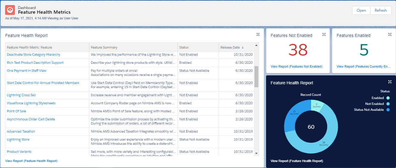 The Health Dashboard is a powerful tool to help maximize your success with Nimble AMS. Whether you’re looking for new ways to improve day-to-day workflows or your overall member value, this is a feature within Nimble AMS to help you achieve (and exceed) your strategic goals. With a quick glance, you can identify how much of Nimble AMS you are utilizing and what else you could be leveraging.
