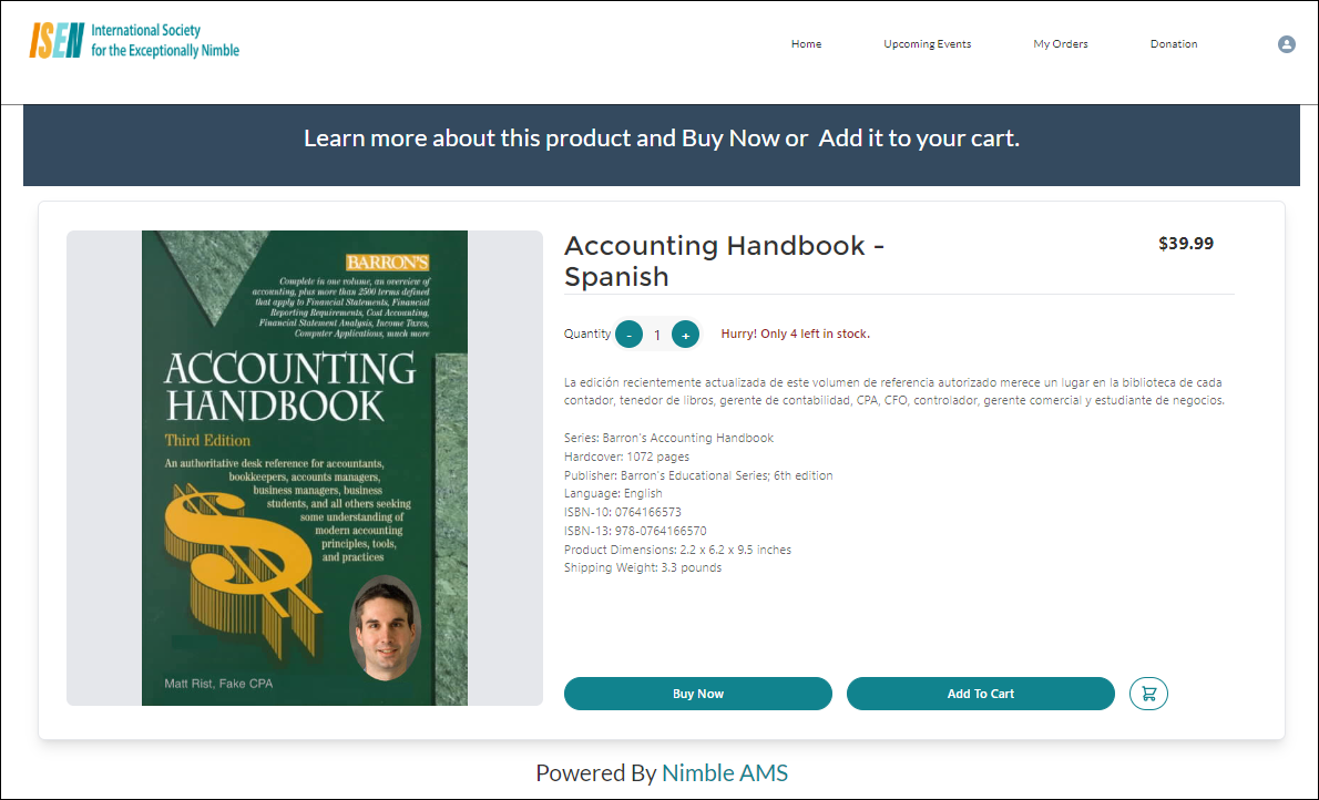 - Allows the member/constituent to use Buy Now to quickly purchase the product and skip the shopping cart process
