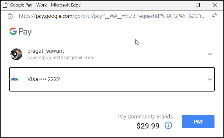 4. Google Pay payment sheet pops up.