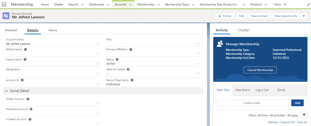 Manage MembershipLWC is only placed on Account and Membership record pages and not on any other record page, as doing that will display an error on those pages.