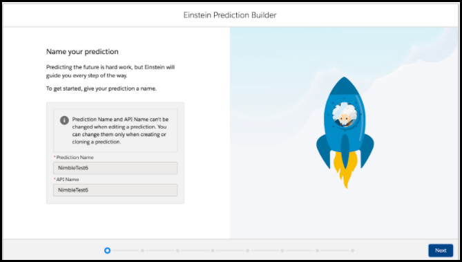 Figure 1. Einstein Prediction Builder page to start the predictive model build process