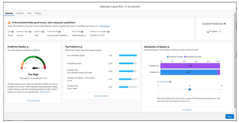 - Know More, Guess Less: Predict which memberships will lapse and make educated predictions using Einstein Prediction Builder in Nimble AMS. You will know which member's behavior to watch and have a dashboard for tracking progress and success.