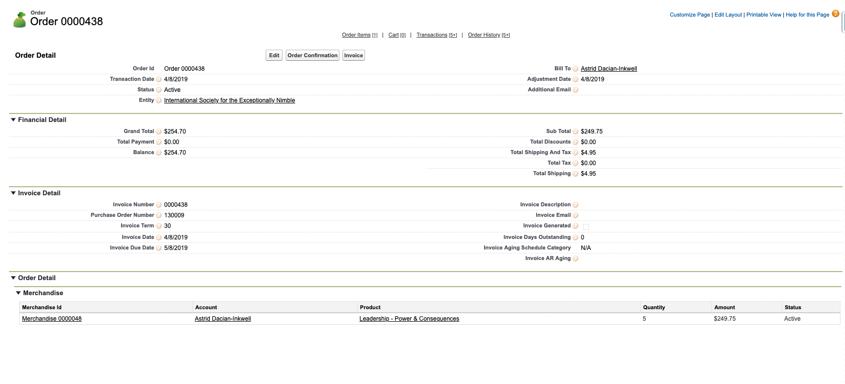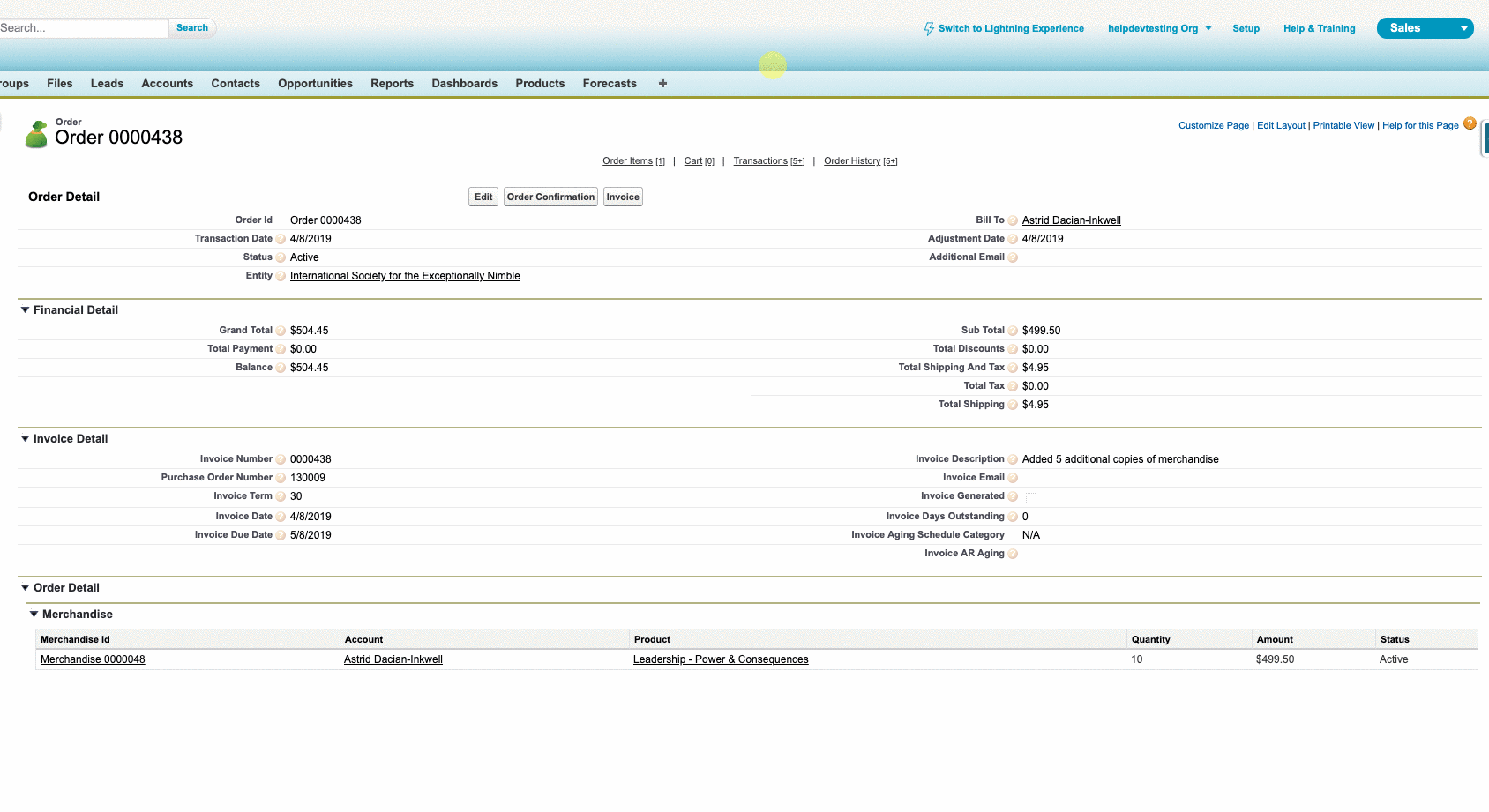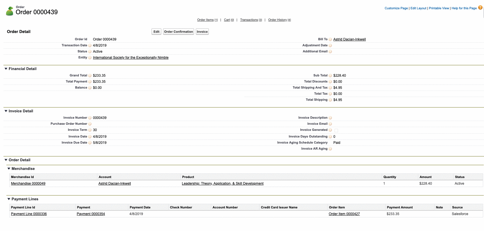 - Alternatively, In the Salesforce Classic Staff View, you can access the account's "Orders" related list and click "Edit" next to the order id