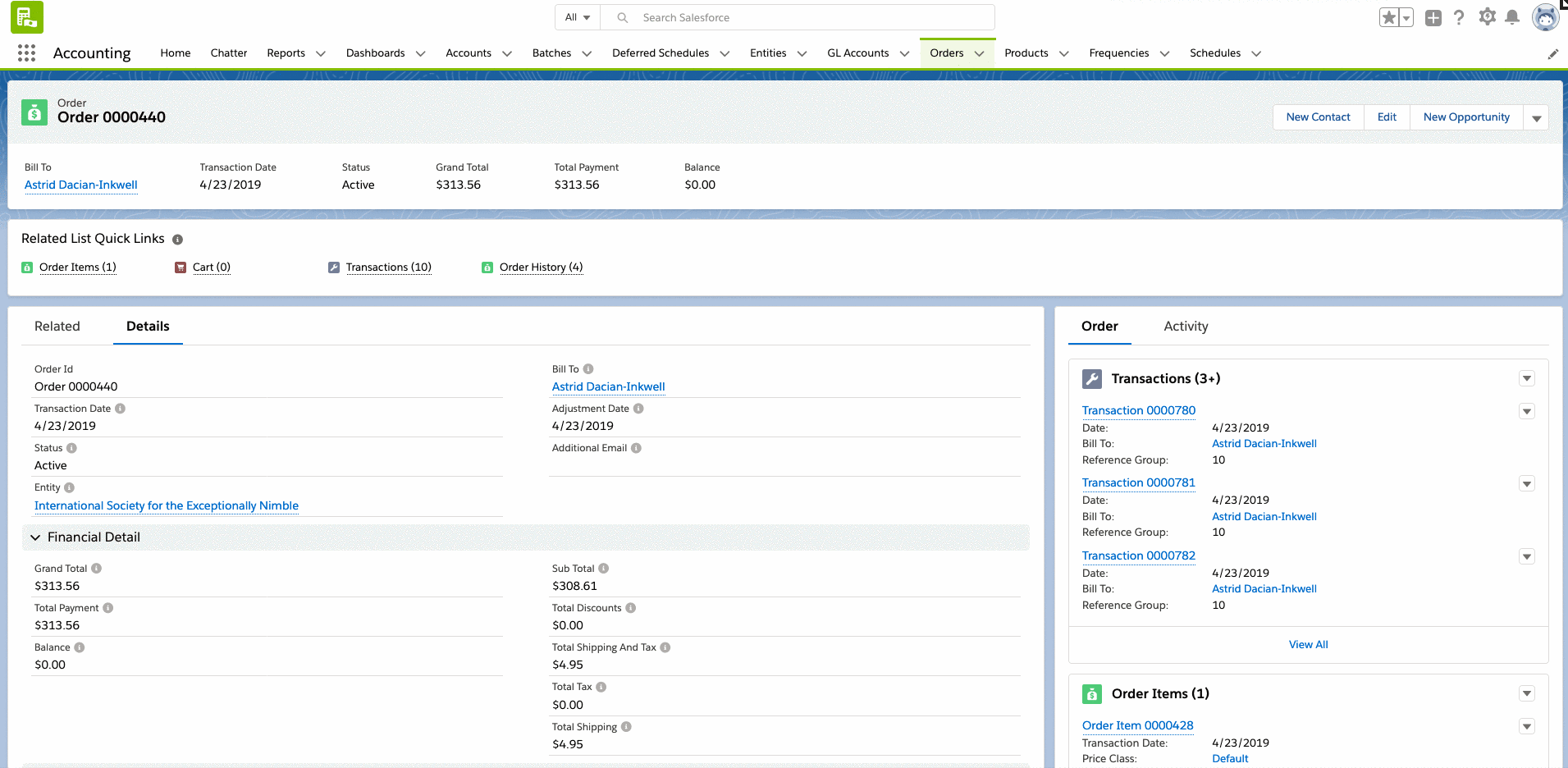 - Alternatively, In the Salesforce Classic Staff View, you can access the account's "Orders" related list and click "Edit" next to the order id.