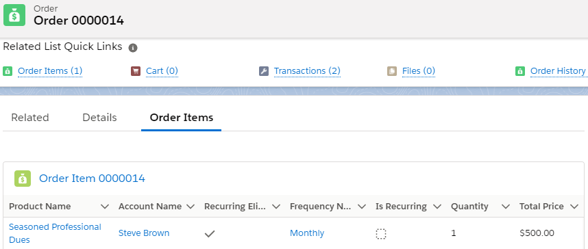 For example, if you wish to recur a Membership, locate the Order Item with the Membership lines.