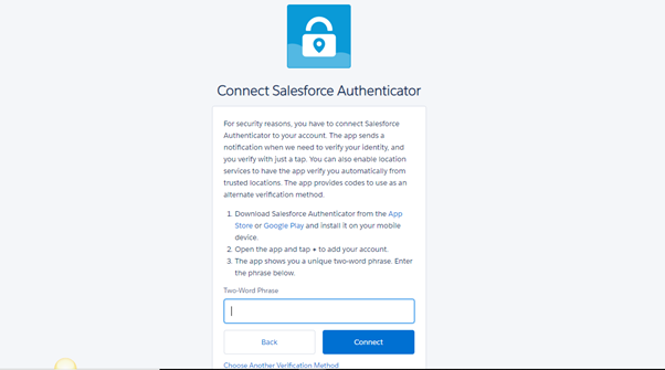 - User should have Salesforce Authenticator app installed on their mobile device.