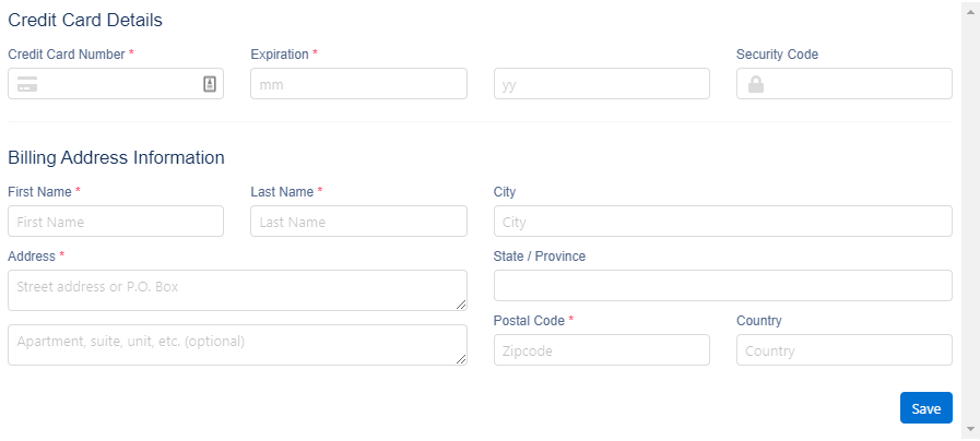Users can also save payment details to save time in placing orders in future. As per the PCI Compliance Statement, the payment details will be stored on BluePay gateway and not on Nimble AMS.