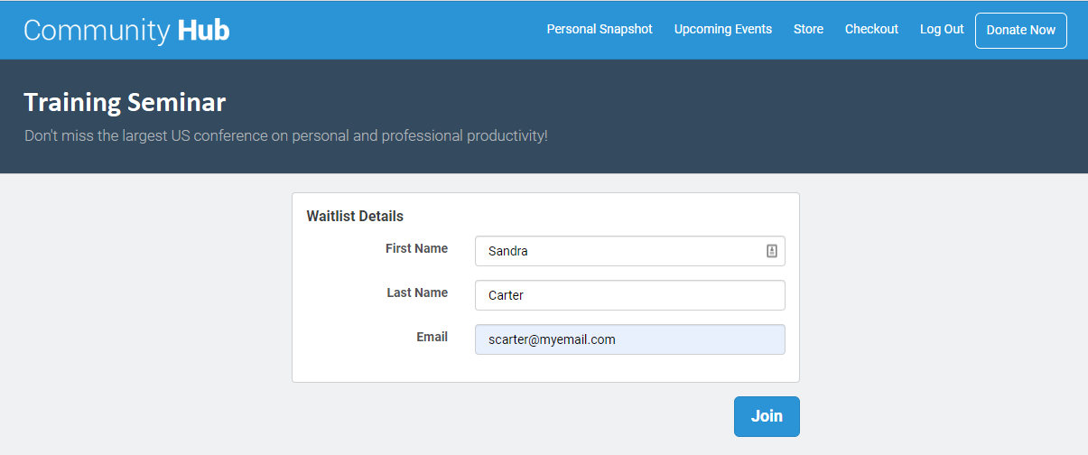 Once a member clicks on Join the Waitlist, he or she will be directed to a page with their waitlist information prepopulated. They have the opportunity to verify and change the information as desired and click on Join to confirm. See Figure 2.