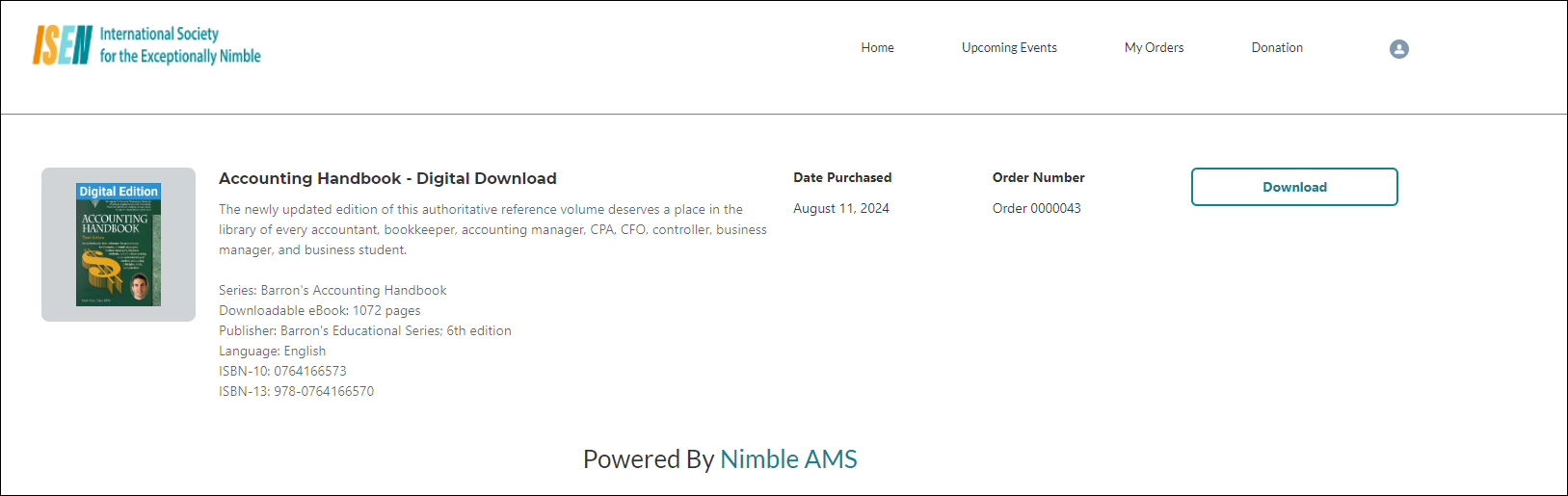 Figure 12. 'Download' page that will show the downloadable product (along with other details) and the Download button.
