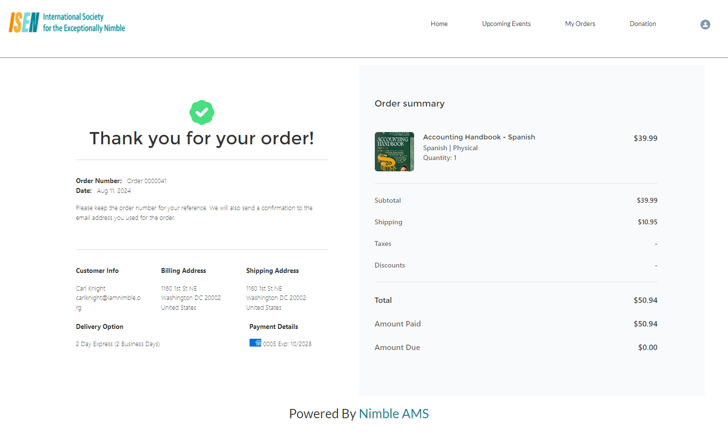 Figure 5. Payment Confirmation Page showing payment approved message and the order summary