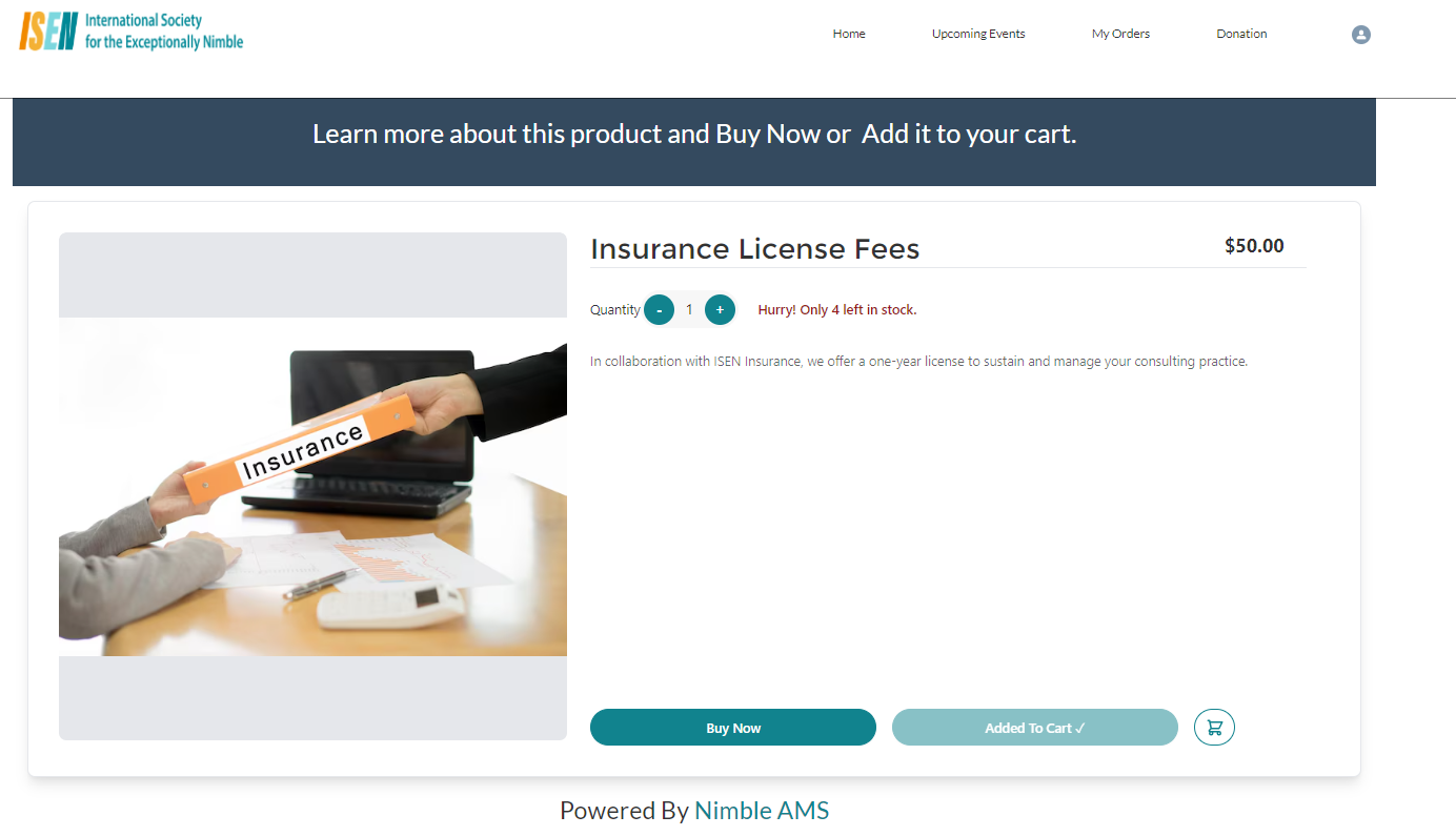 Miscellaneous is a type of product in Nimble AMS and is created to represent a one-off item your association sells that cannot be categorized into any of the other product types. On the Product details page, your constituent will see the name and description of the product along with an image and price. A list price for the product will be displayed to guests and when members log in to the Member Portal they will see their special price.